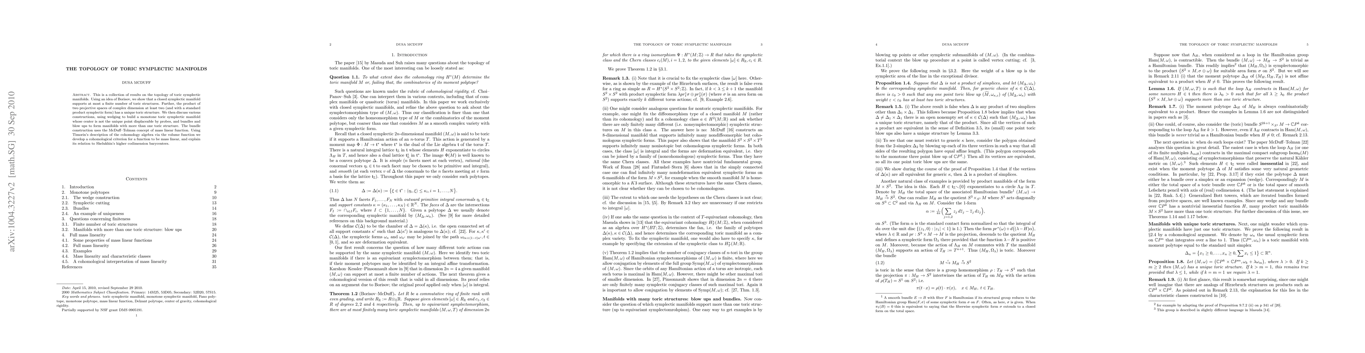 This paper investigates the topology of toric symplectic manifolds, proving that a closed symplectic manifold supports a finite number of toric structures. It also demonstrates the uniqueness of the toric structure on the product of two projective spaces and explores constructions that generate toric symplectic manifolds with multiple structures.