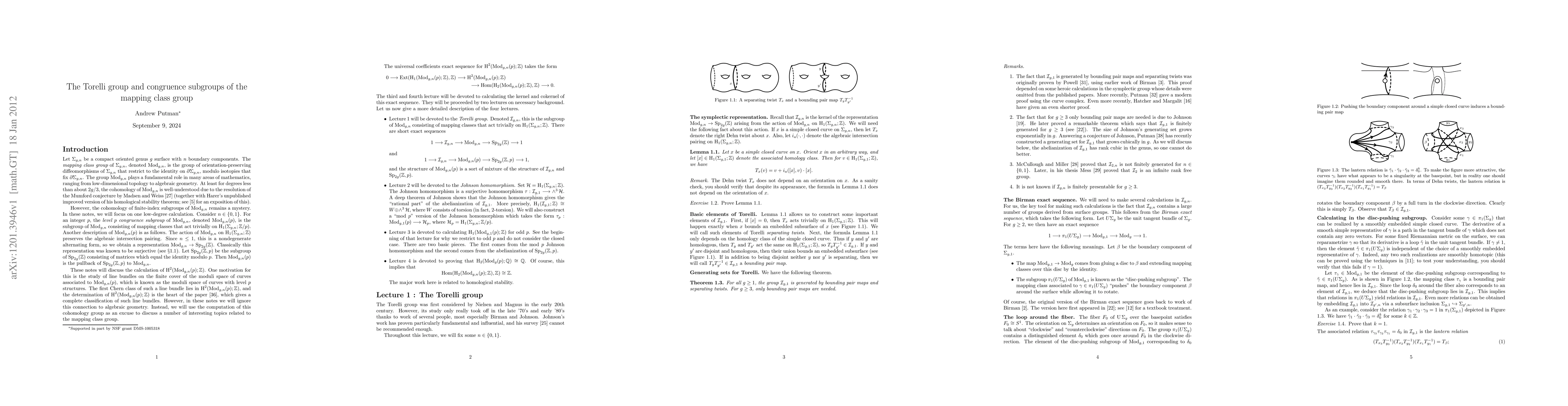 Researchers investigated the connection between the Torelli group and congruence subgroups of the mapping class group, with key findings on the cohomology groups of level p congruence subgroups.