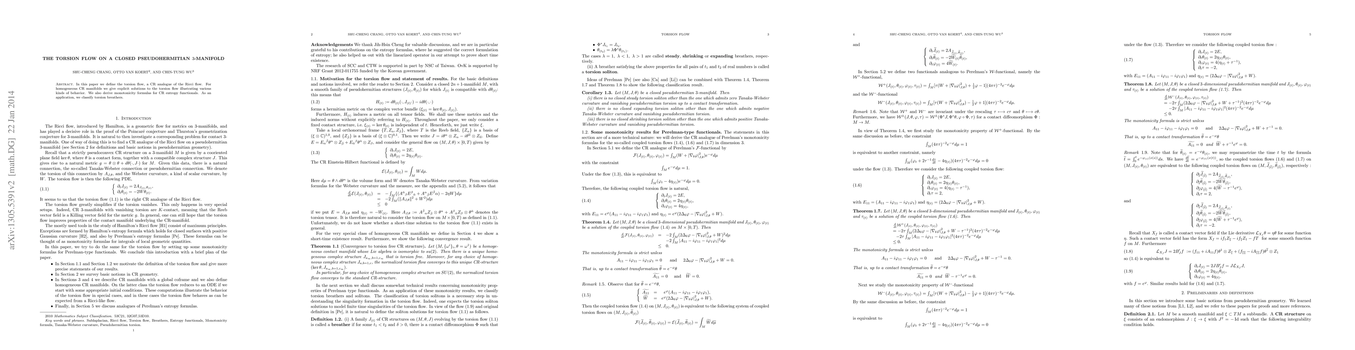 The paper introduces the torsion flow equation and derives explicit solutions for homogeneous CR manifolds, along with monotonicity formulas for CR entropy functionals, providing a foundation for further research in CR geometry.