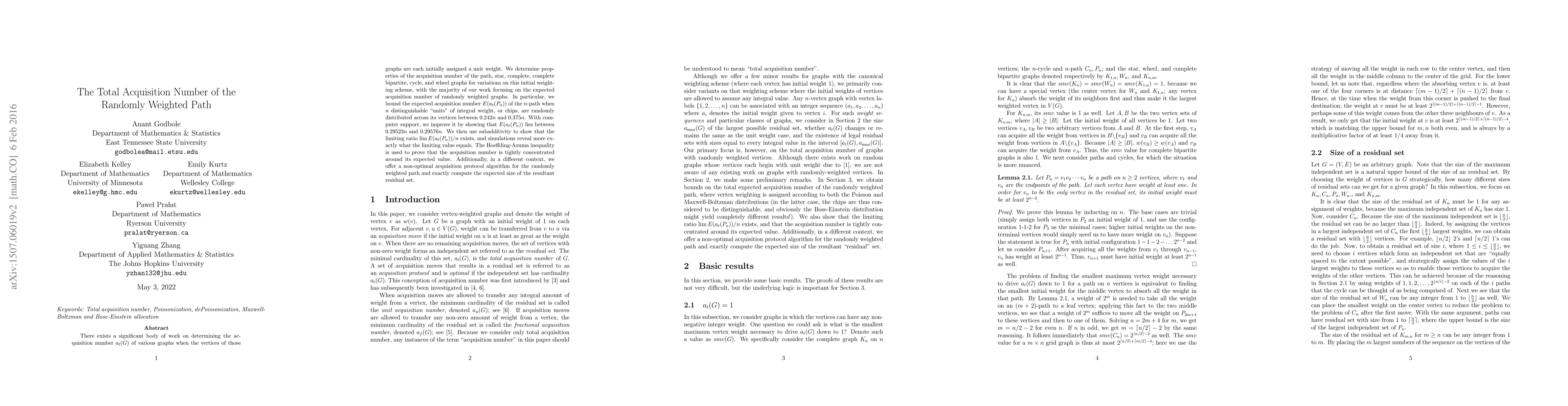 There exists a significant body of work on determining the acquisition number $a_t(G)$ of various graphs when the vertices of those graphs are each initially assigned a unit weight. We determine properties of the acquisition number of the path, star, complete, complete bipartite, cycle, and wheel graphs for variations on this initial weighting scheme, with the majority of our work focusing on the expected acquisition number of randomly weighted graphs. In particular, we bound the expected acquisition number $E(a_t(P_n))$ of the $n$-path when $n$ distinguishable "units" of integral weight, or chips, are randomly distributed across its vertices between $0.242n$ and $0.375n$. With computer support, we improve it by showing that $E(a_t(P_n))$ lies between $0.29523n$ and $0.29576n$. We then use subadditivity to show that the limiting ratio $\lim E(a_t(P_n))/n$ exists, and simulations reveal more exactly what the limiting value equals. The Hoeffding-Azuma inequality is used to prove that the acquisition number is tightly concentrated around its expected value. Additionally, in a different context, we offer a non-optimal acquisition protocol algorithm for the randomly weighted path and exactly compute the expected size of the resultant residual set.