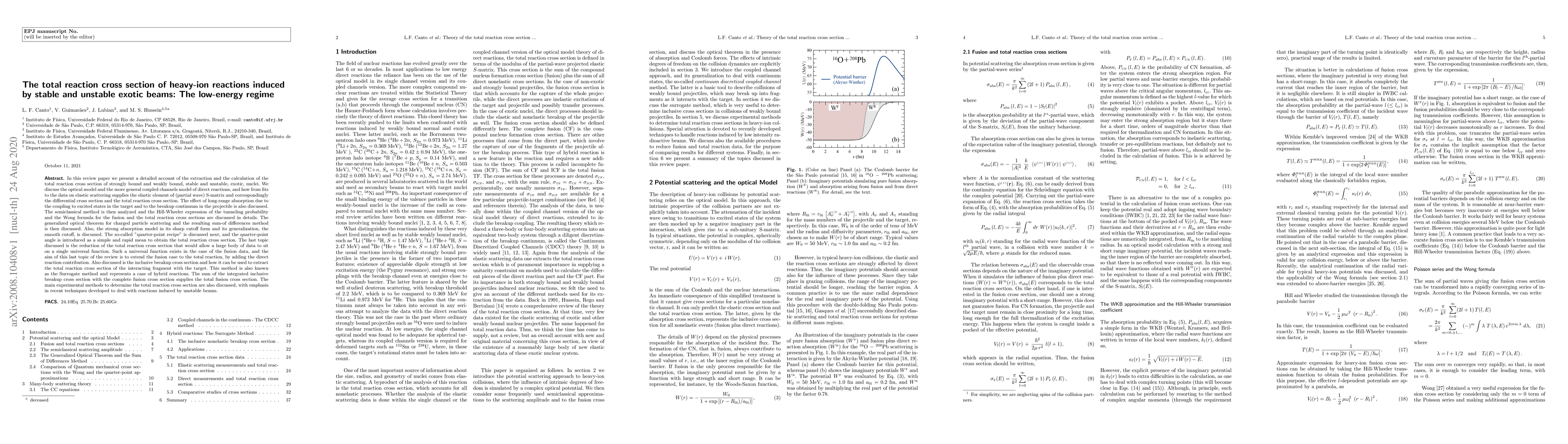 This review paper details methods for calculating the total reaction cross section of exotic nuclei, including stable and unstable beams, focusing on the low-energy regime. It discusses optical and coupled channels models, the "quarter-point recipe," and the Surrogate method for extracting reaction cross sections, emphasizing recent techniques for unstable beams.