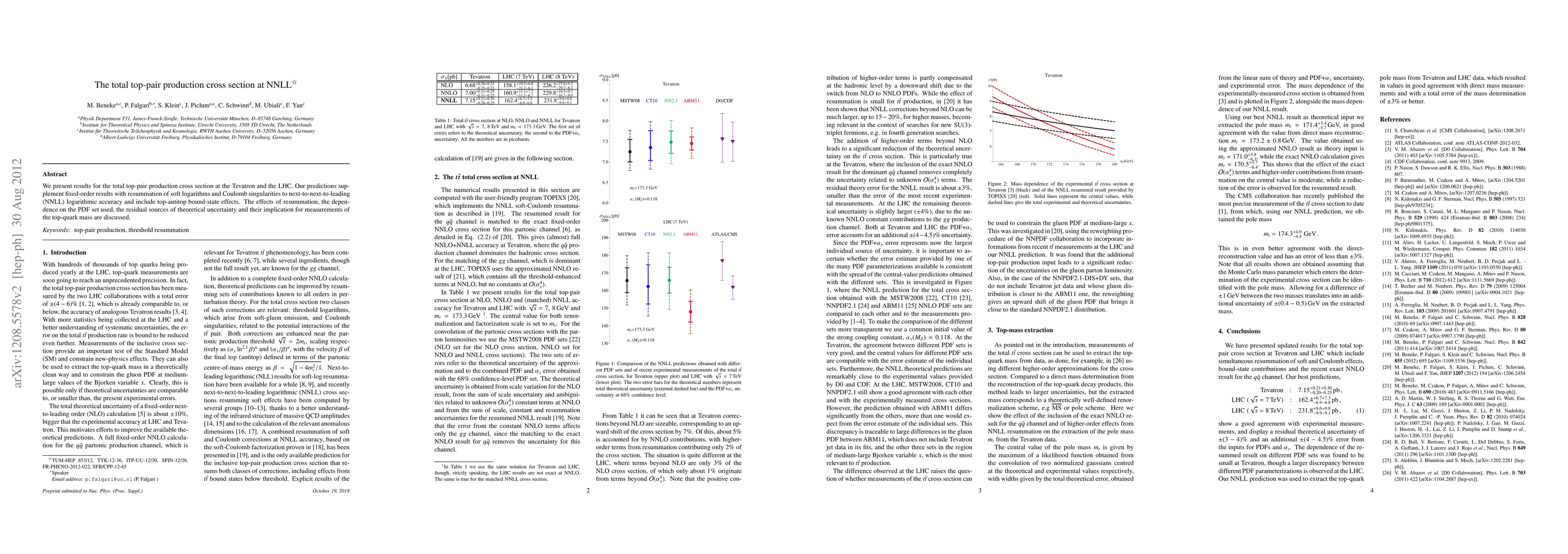 The study presents total top-pair production cross section predictions at Tevatron and LHC with resummation to NNLL logarithmic accuracy, including top-antitop bound-state effects, and discusses implications for top-quark mass measurements.