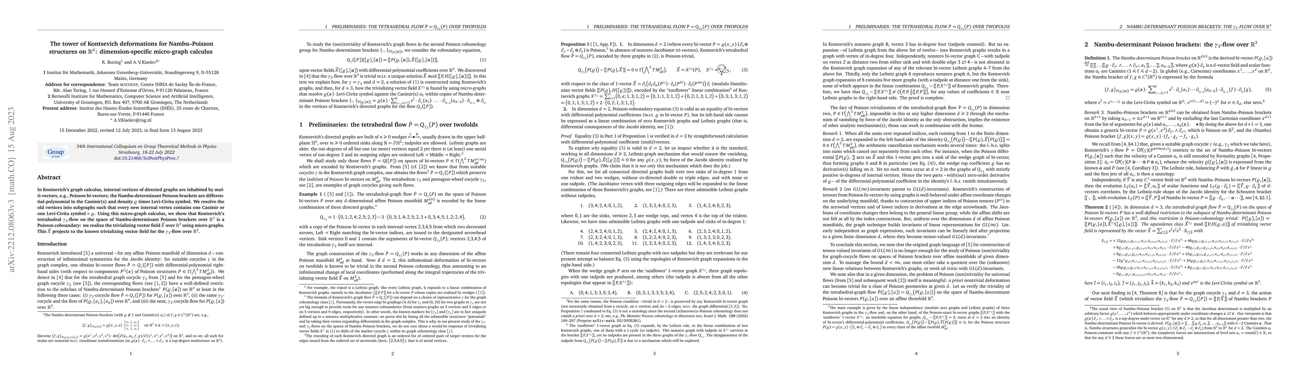 In Kontsevich's graph calculus, internal vertices of directed graphs are inhabited by multi-vectors, e.g., Poisson bi-vectors; the Nambu-determinant Poisson brackets are differential-polynomial in the Casimir(s) and density $\varrho$ times Levi-Civita symbol. We resolve the old vertices into subgraphs such that every new internal vertex contains one Casimir or one Levi-Civita symbol${}\times\varrho$. Using this micro-graph calculus, we show that Kontsevich's tetrahedral $\gamma_3$-flow on the space of Nambu-determinant Poisson brackets over $\mathbb{R}^3$ is a Poisson coboundary: we realize the trivializing vector field $\smash{\vec{X}}$ over $\smash{\mathbb{R}^3}$ using micro-graphs. This $\smash{\vec{X}}$ projects to the known trivializing vector field for the $\gamma_3$-flow over $\smash{\mathbb{R}^2}$.