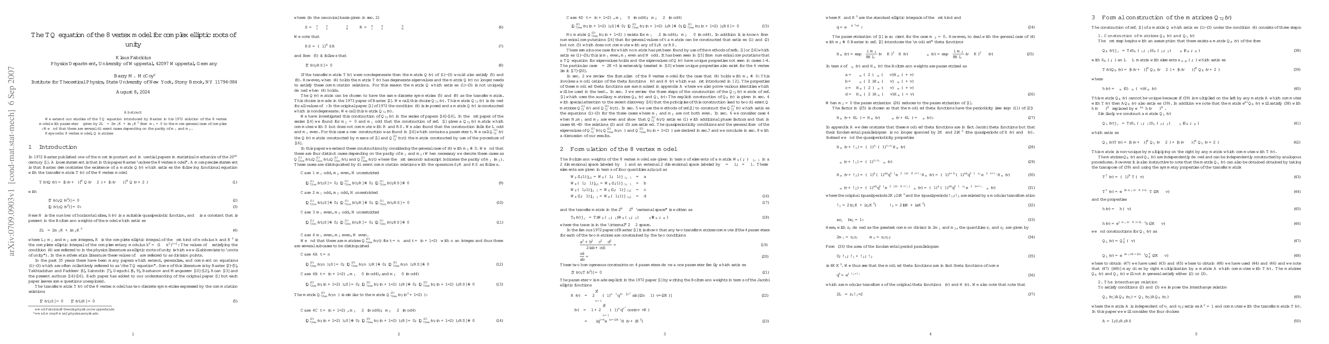 We extend our studies of the TQ equation introduced by Baxter in his 1972 solution of the 8 vertex model with parameter $\eta$ given by $2L\eta=2m_1K+im_2K'$ from $m_2=0$ to the more general case of complex $\eta.$ We find that there are several different cases depending on the parity of $m_1$ and $m_2$.