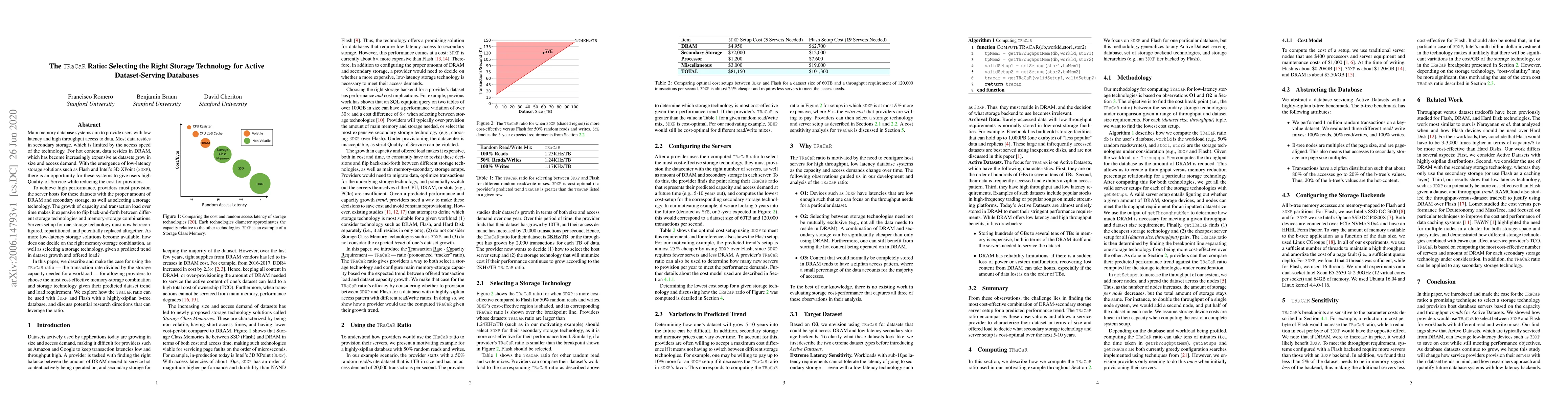 Main memory database systems aim to provide users with low latency and high throughput access to data. Most data resides in secondary storage, which is limited by the access speed of the technology. For hot content, data resides in DRAM, which has become increasingly expensive as datasets grow in size and access demand. With the emergence of low-latency storage solutions such as Flash and Intel's 3D XPoint (3DXP), there is an opportunity for these systems to give users high Quality-of-Service while reducing the cost for providers. To achieve high performance, providers must provision the server hosts for these datasets with the proper amount of DRAM and secondary storage, as well as selecting a storage technology. The growth of capacity and transaction load overtime makes it expensive to flip back-and-forth between different storage technologies and memory-storage combinations. Servers set up for one storage technology must now be reconfigured, repartitioned, and potentially replaced altogether. As more low-latency storage solutions become available, how does one decide on the right memory-storage combination, as well as selecting a storage technology, given a predicted trend in dataset growth and offered load? In this paper, we describe and make the case for using the TRaCaR ratio - the transaction rate divided by the storage capacity needed for a workload - for allowing providers to choose the most cost-effective memory-storage combination and storage technology given their predicted dataset trend and load requirement. We explore how the TRaCaR ratio can be used with 3DXP and Flash with a highly-zipfian b-tree database, and discuss potential research directions that can leverage the ratio.
