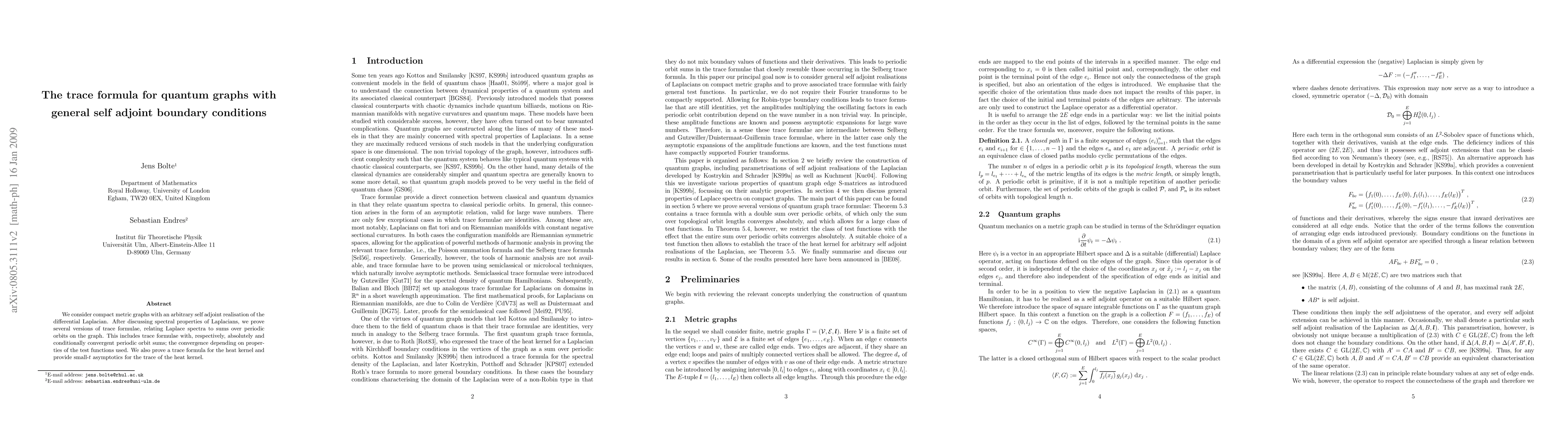 This paper explores the spectral properties of differential Laplacians on quantum graphs with self-adjoint boundary conditions, proving various trace formulae linking Laplace spectra to sums over periodic orbits, and providing asymptotics for the heat kernel trace at small times.