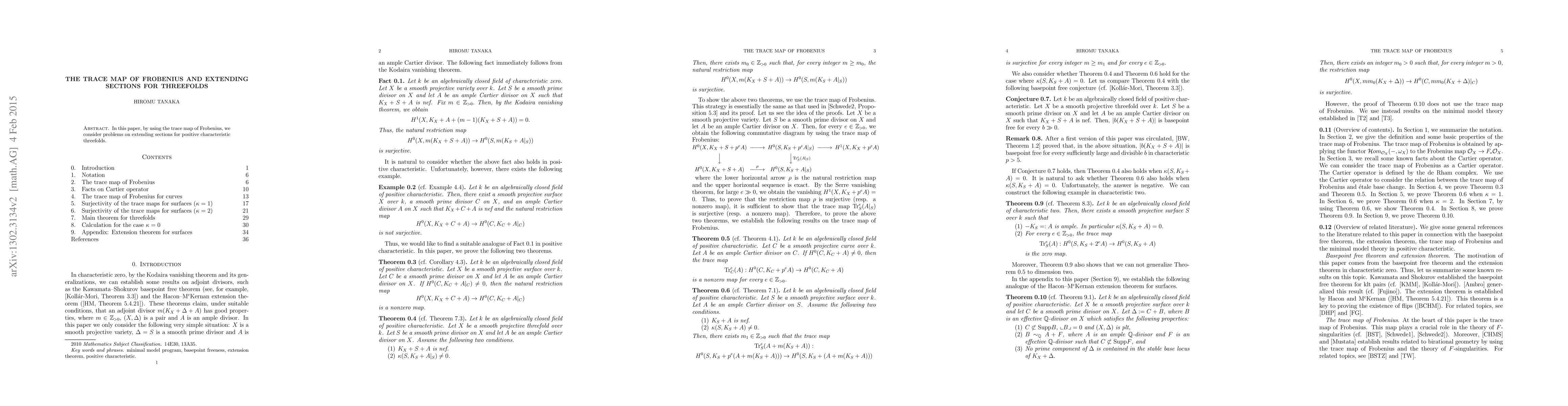 In this paper, by using the trace map of Frobenius, we consider problems on extending sections for positive characteristic threefolds.