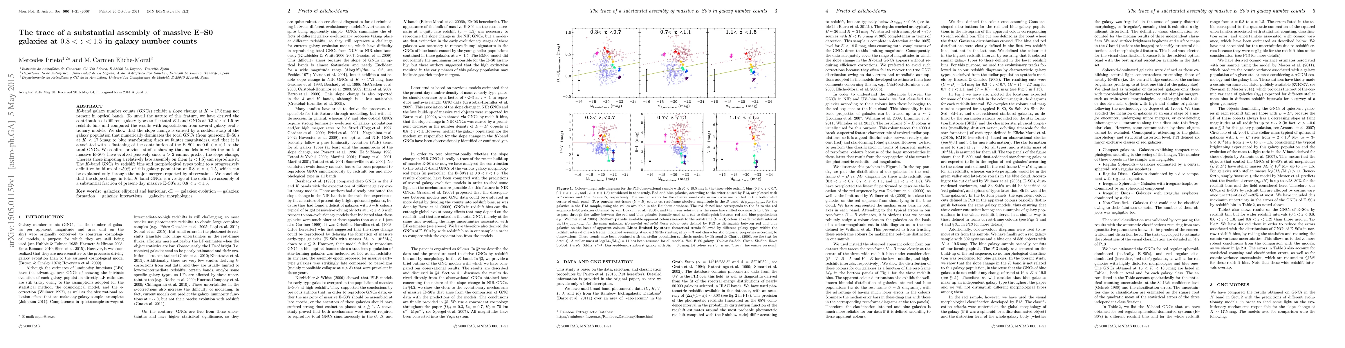 Researchers found a change in galaxy number counts at K~17.5 mag that's not seen in optical bands, which they attribute to massive E-S0 galaxies assembling between z=0.8 and z=1.5 through major mergers.