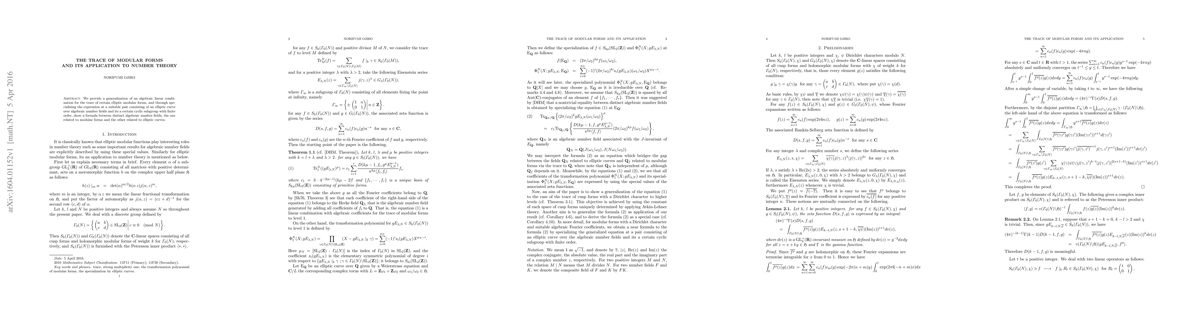 This paper generalizes the algebraic linear combination for the trace of elliptic modular forms and applies it to derive a formula linking distinct algebraic number fields, one associated with modular forms and the other with elliptic curves over algebraic number fields.