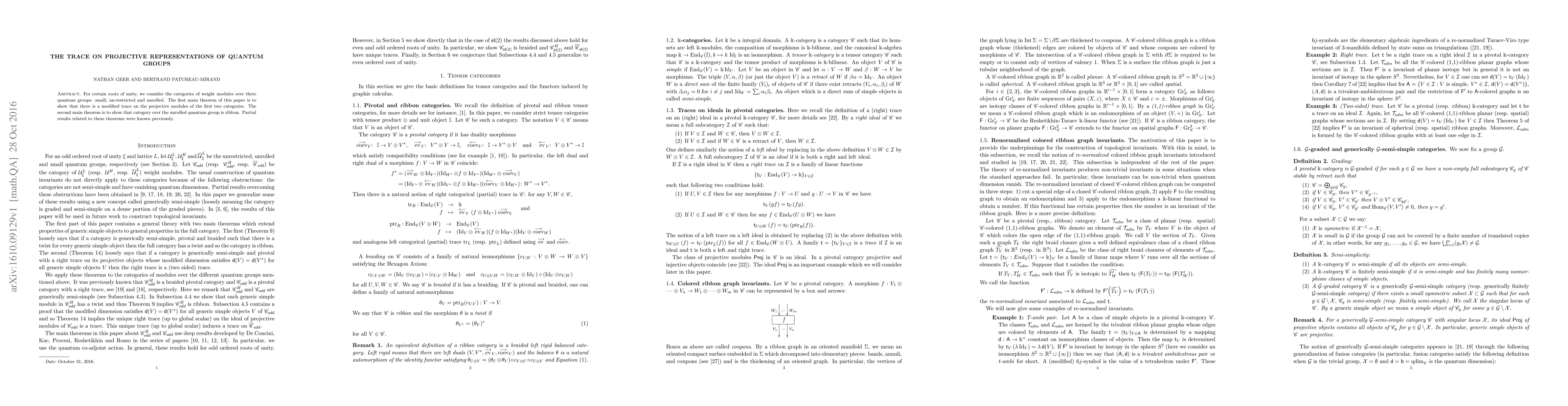 This research contributes to the understanding of projective representations and traces in quantum groups, which have applications in areas such as conformal field theory and topological quantum field theories.