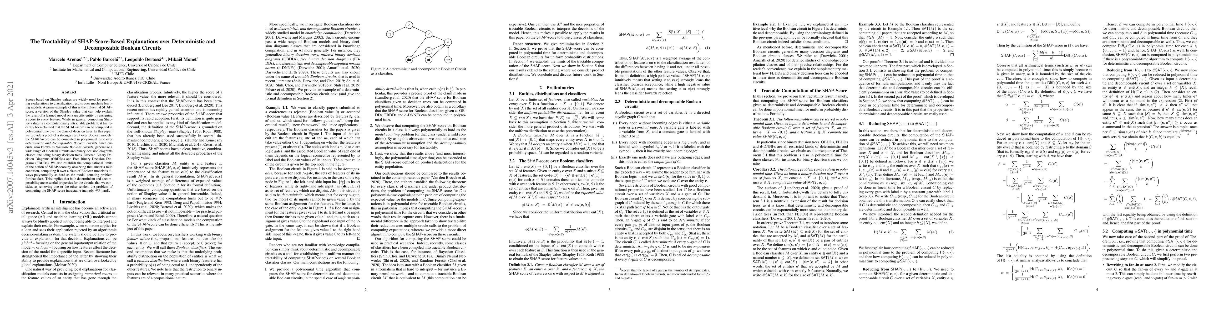 This paper demonstrates that SHAP-score-based explanations can be computed in polynomial time over deterministic and decomposable Boolean circuits, which include various binary decision diagrams. It also establishes that without either determinism or decomposability, computing SHAP-scores becomes intractable, aligning with the model counting problem's complexity.