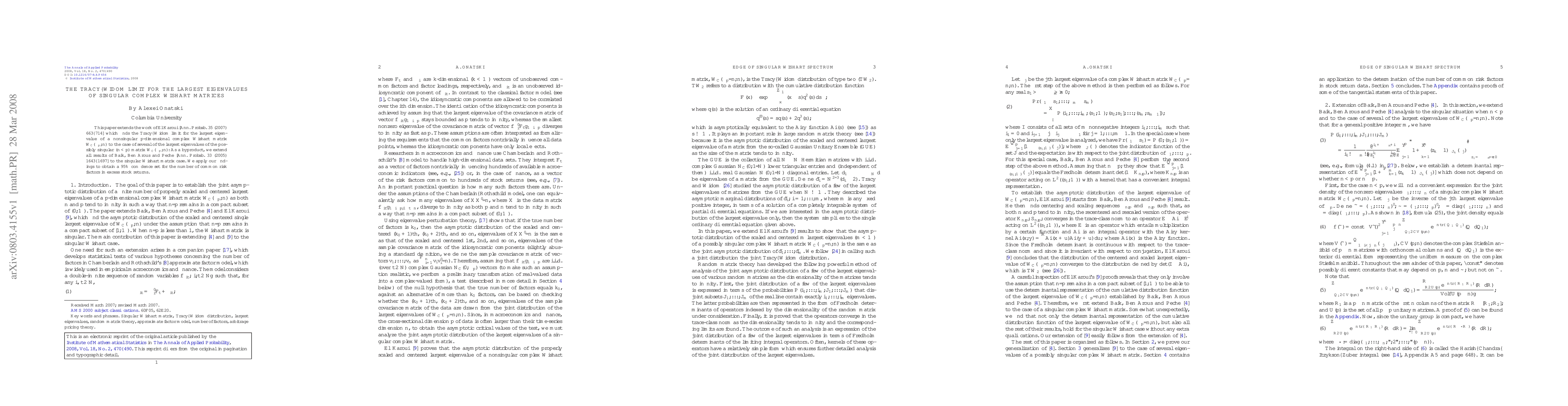 This paper extends the Tracy-Widom limit for the largest eigenvalue of nonsingular complex Wishart matrices to several largest eigenvalues of singular matrices, applying these findings to estimate the number of common risk factors in stock returns.