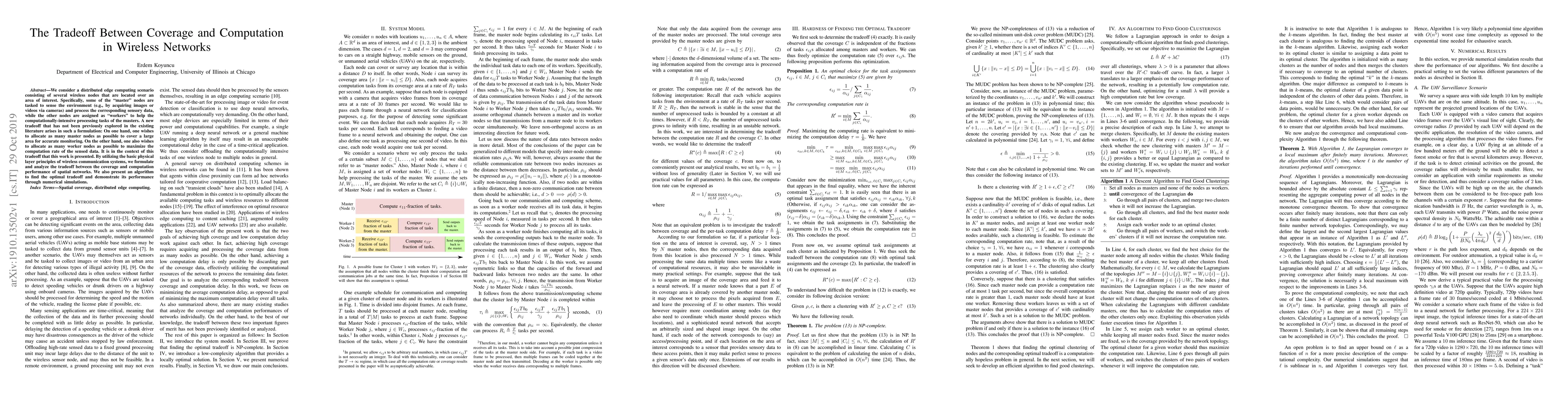 This paper explores the tradeoff between coverage area and computation rate in wireless networks used for distributed edge computing. It presents an algorithm to find the optimal balance between these two competing factors.