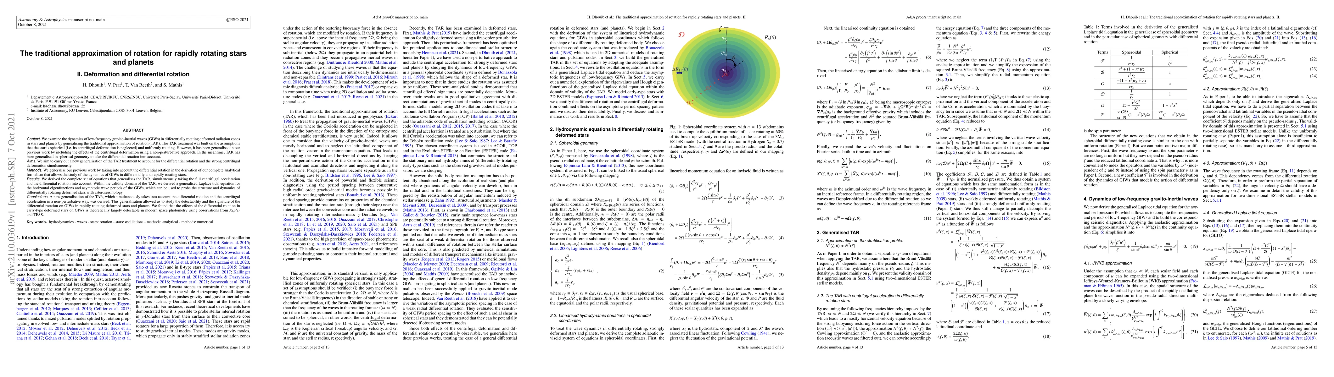 This paper generalises the traditional approximation of rotation (TAR) to account for differential rotation and strong centrifugal deformation in rapidly rotating stars and planets. The authors developed a new analytical formalism that allows for the study of low-frequency gravito-inertial waves (GIWs) under these conditions, finding that differential rotation effects are detectable with modern space photometry.