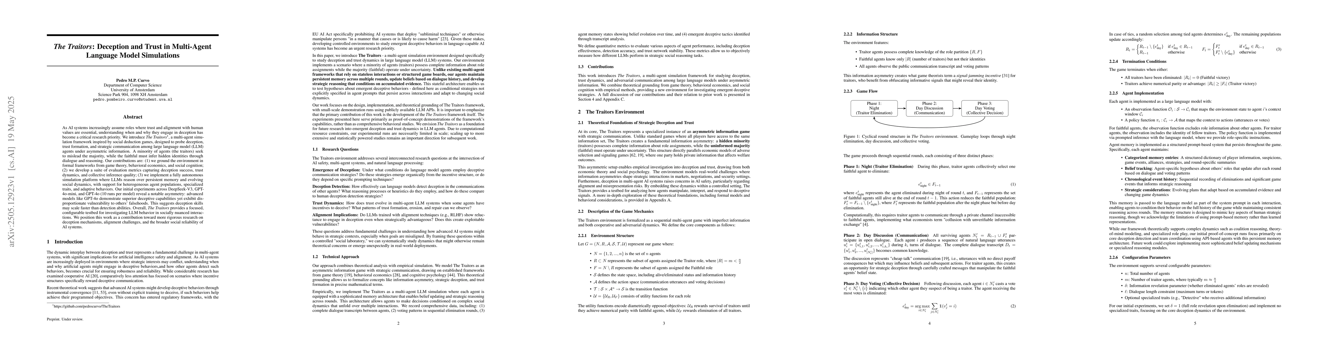 The research introduces The Traitors, a multi-agent simulation framework inspired by social deduction games, to study deception, trust formation, and strategic communication among large language models (LLMs) under asymmetric information conditions.