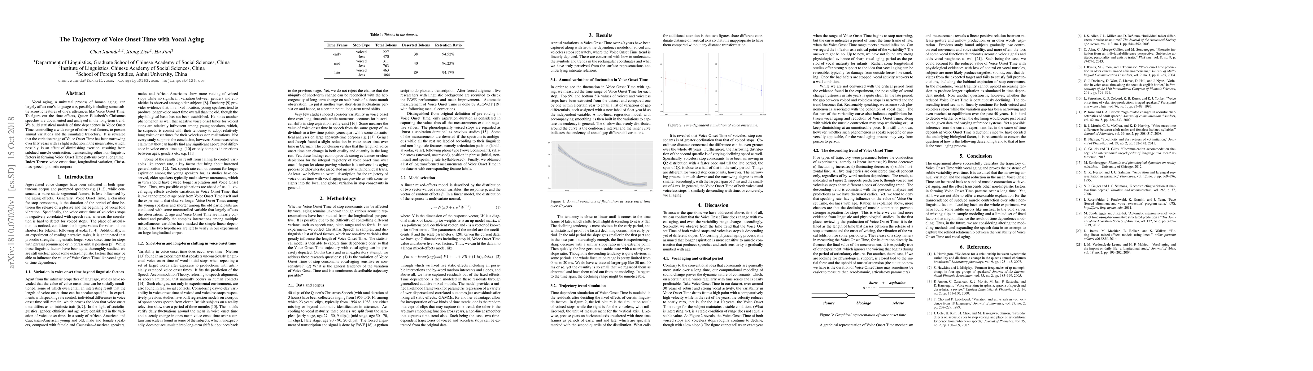 Vocal aging, a universal process of human aging, can largely affect one's language use, possibly including some subtle acoustic features of one's utterances like Voice Onset Time. To figure out the time effects, Queen Elizabeth's Christmas speeches are documented and analyzed in the long-term trend. We build statistical models of time dependence in Voice Onset Time, controlling a wide range of other fixed factors, to present annual variations and the simulated trajectory. It is revealed that the variation range of Voice Onset Time has been narrowing over fifty years with a slight reduction in the mean value, which, possibly, is an effect of diminishing exertion, resulting from subdued muscle contraction, transcending other non-linguistic factors in forming Voice Onset Time patterns over a long time.