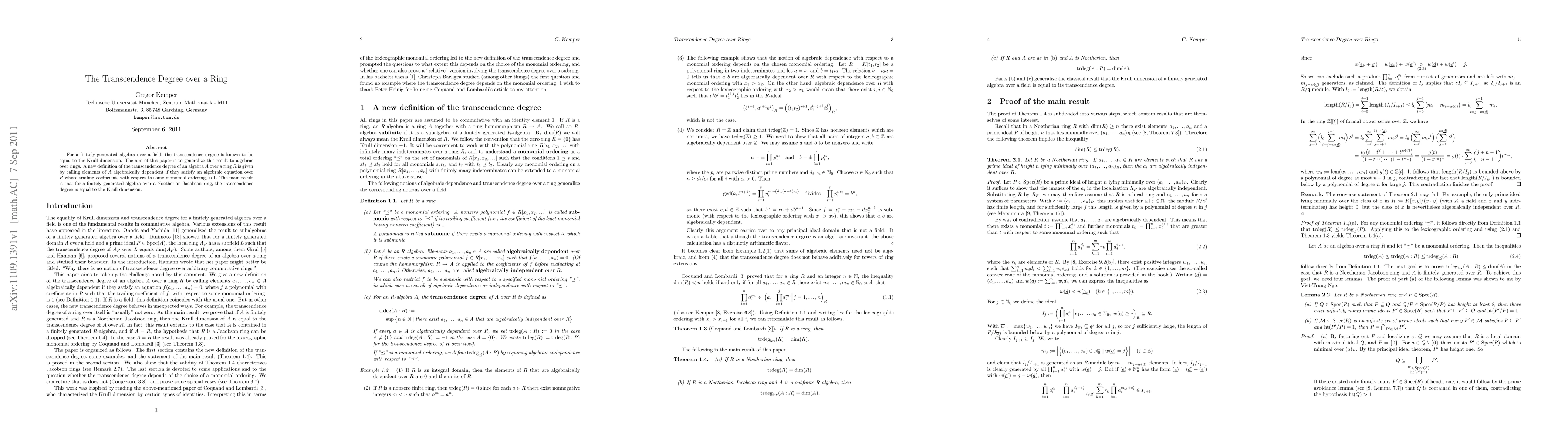 The research introduces a new definition of transcendence degree that generalizes the known result for fields to rings.