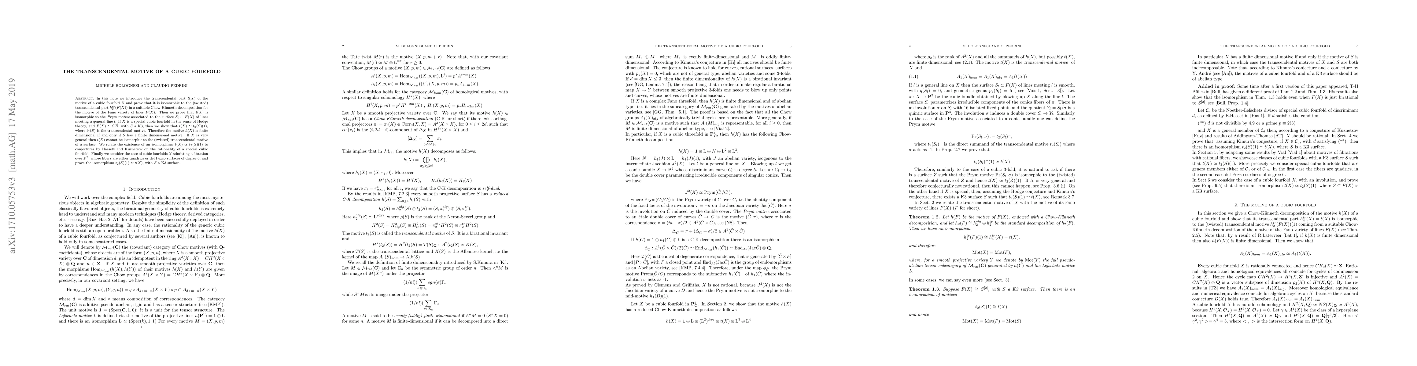 This paper introduces the transcendental part $t(X)$ of the motive of a cubic fourfold $X$, proving its isomorphism to the Prym motive associated with lines on $X$. It further establishes that $t(X)$ corresponds to $t_2(S)(1)$ when $X$ is a special cubic fourfold, showing that $h(X)$ is finite-dimensional if $S$ is a K3 surface with a finite-dimensional motive.