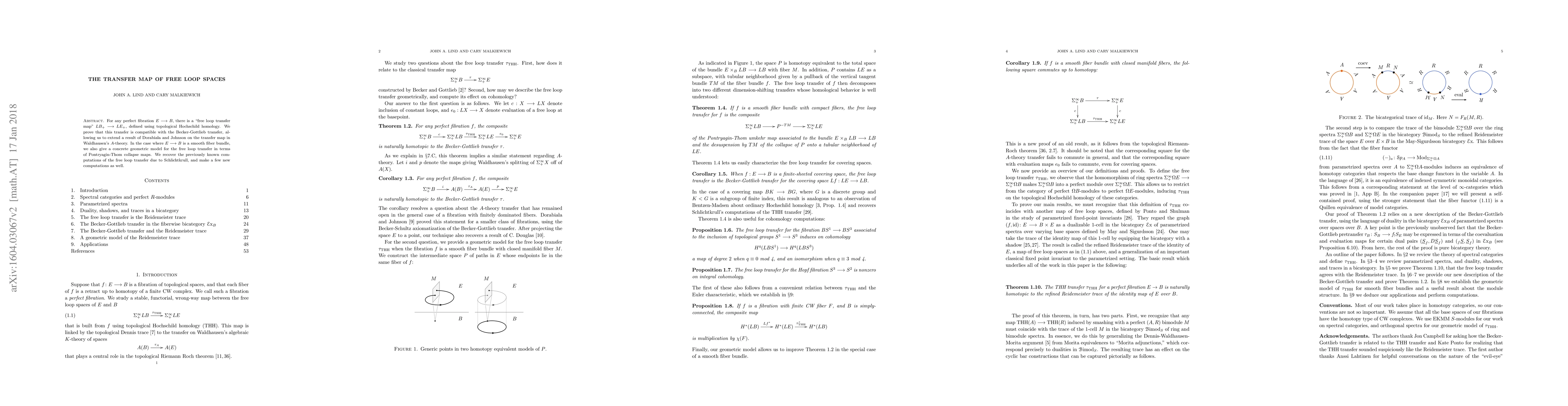 The paper proves compatibility between a free loop transfer map and Becker-Gottlieb transfer, extending prior work in Waldhausen's A-theory. It also provides geometric models for the free loop transfer in smooth fiber bundles.