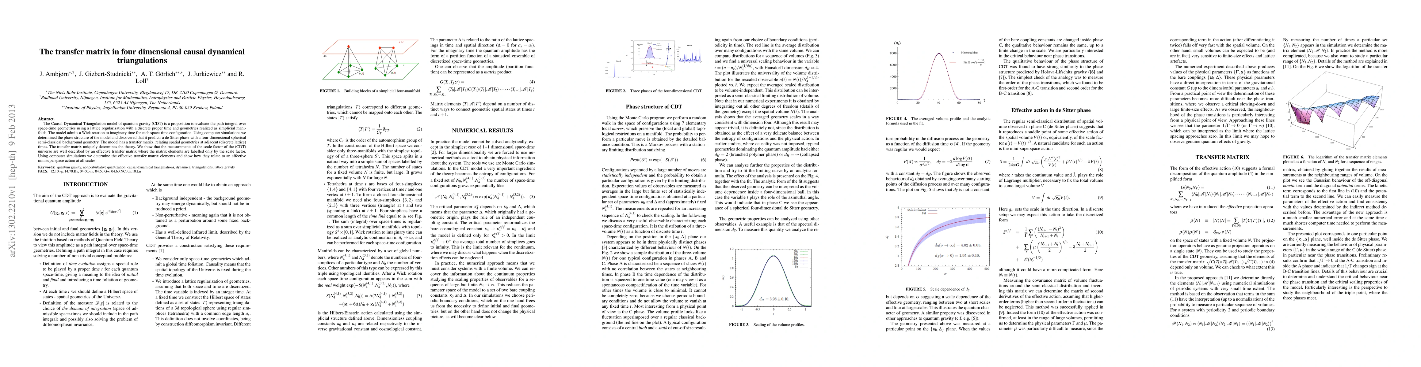 This work distinguishes itself by applying a transfer matrix approach to four-dimensional CDT, offering a novel perspective on the model's phase structure and geometry, and revealing a de Sitter phase with a four-dimensional spherical semi-classical background.