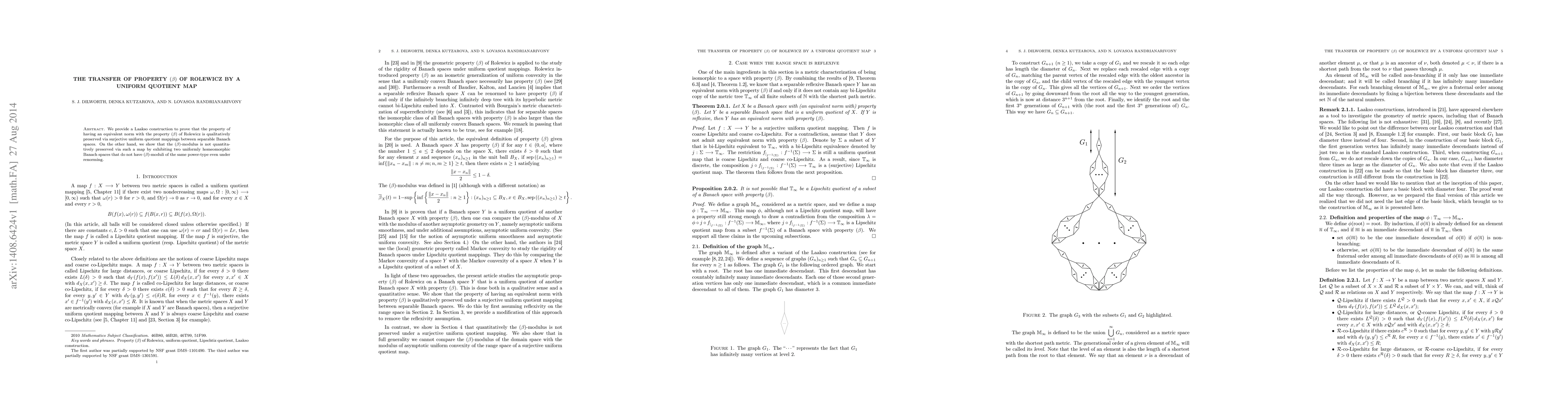 We provide a Laakso construction to prove that the property of having an equivalent norm with the property $(\beta)$ of Rolewicz is qualitatively preserved via surjective uniform quotient mappings between separable Banach spaces. On the other hand, we show that the $(\beta)$-modulus is not quantitatively preserved via such a map by exhibiting two uniformly homeomorphic Banach spaces that do not have $(\beta)$-moduli of the same power-type even under renorming.