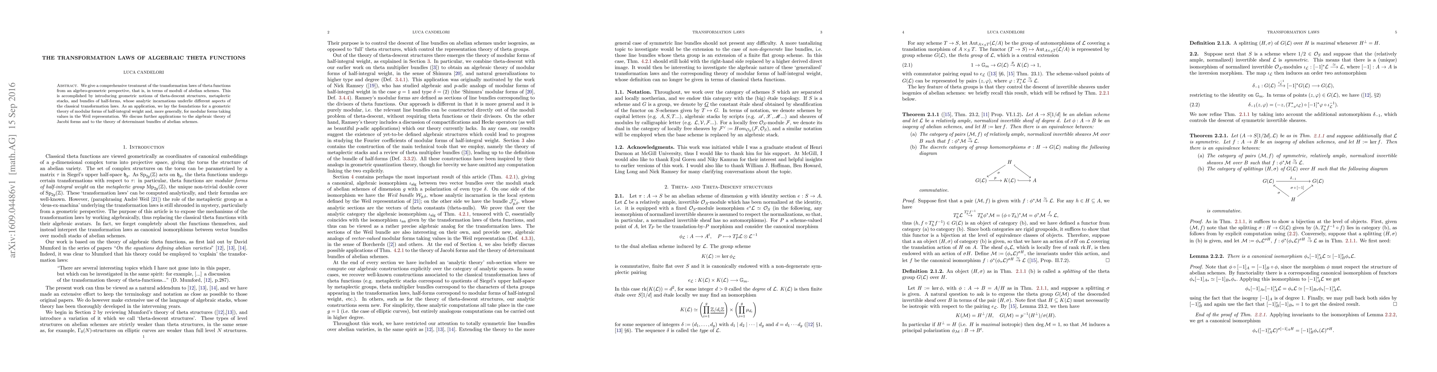 This paper presents a comprehensive treatment of the transformation laws of theta functions through an algebro-geometric approach, introducing concepts like theta-descent structures and bundles of half-forms. It lays the groundwork for a geometric theory of modular forms of half-integral weight and explores applications to Jacobi forms and determinant bundles of abelian schemes.
