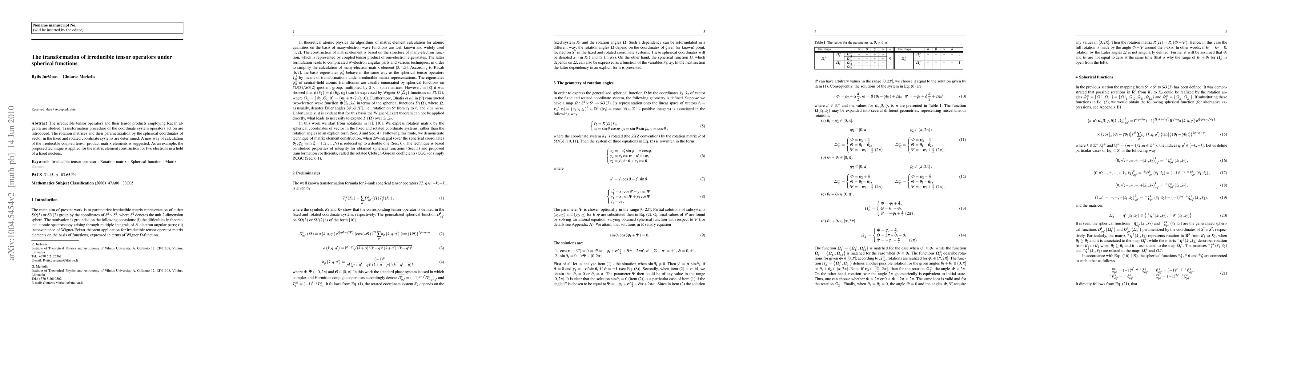 This paper explores the transformation of irreducible tensor operators under spherical functions, introducing a new method for calculating coupled tensor product matrix elements using Racah algebra and rotation matrices parametrized by spherical coordinates. An example application is provided for two electrons in a fixed nucleus field.