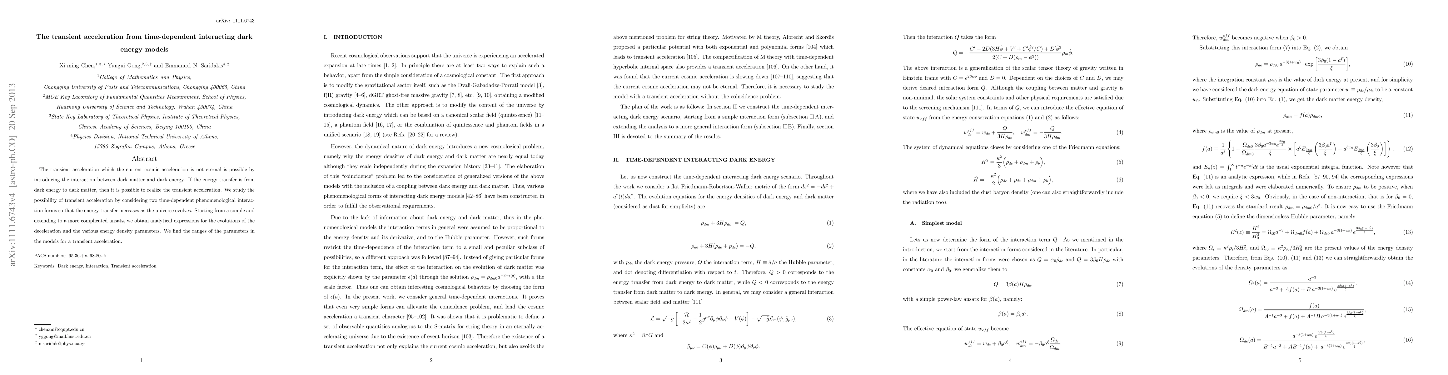 This paper investigates transient acceleration in the universe through interactions between dark matter and dark energy, proposing that energy transfer from dark energy to dark matter can lead to temporary cosmic acceleration. Analytical expressions for the evolution of deceleration and energy densities are derived, identifying parameter ranges that allow for transient acceleration.