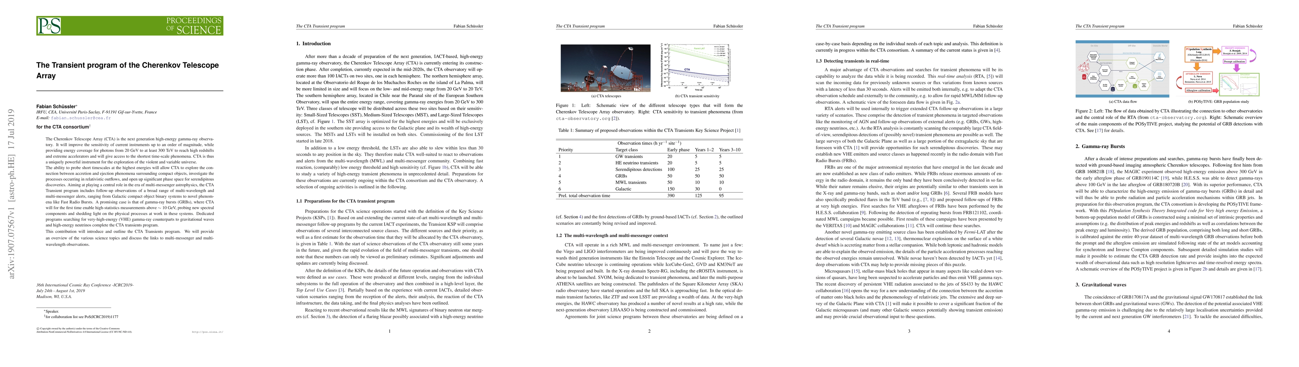 The Cherenkov Telescope Array (CTA) aims to significantly enhance gamma-ray observation capabilities, focusing on transient phenomena across a wide energy spectrum. The CTA Transient program will conduct follow-up observations for various multi-messenger alerts, including gamma-ray bursts and gravitational waves, to explore the violent and dynamic universe.