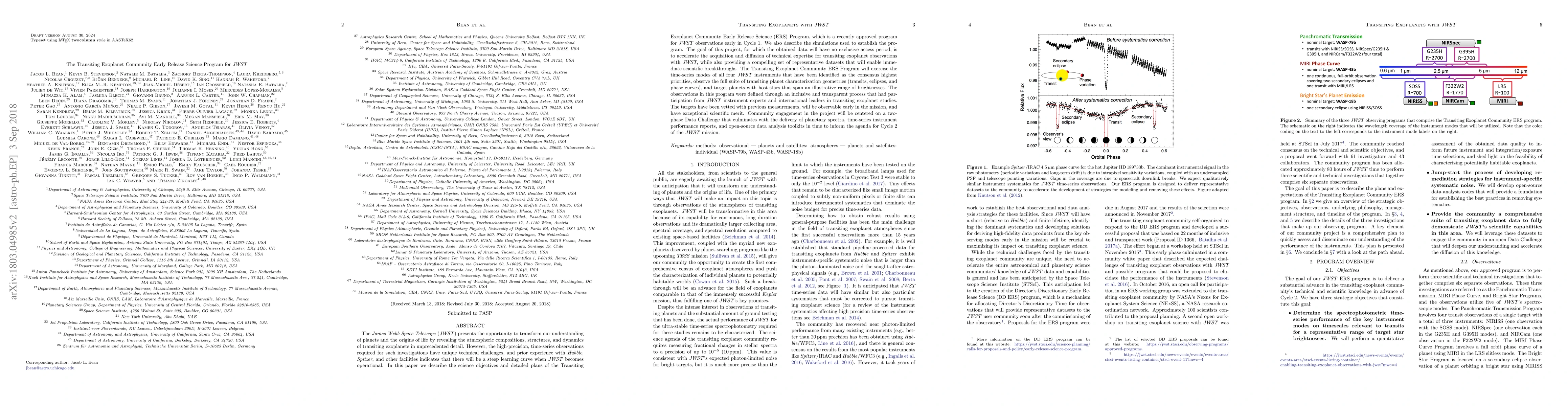 The Transiting Exoplanet Community Early Release Science Program for JWST aims to accelerate technical expertise and provide representative datasets for immediate scientific breakthroughs. This program will utilize all four JWST instruments to observe various transiting exoplanet characterizations, fostering community engagement through a two-phase Data Challenge.