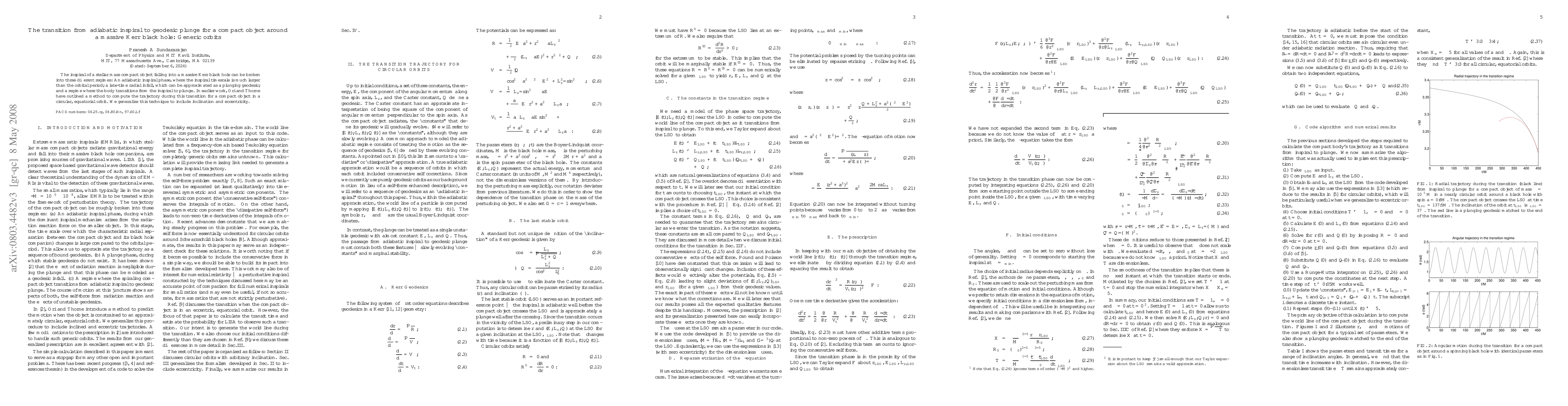 This paper investigates the transition from an adiabatic inspiral to a geodesic plunge for a compact object around a Kerr black hole, extending previous methods to account for orbital inclination and eccentricity. The study focuses on the dynamics during the transition phase, providing a generalized approach for non-circular orbits.