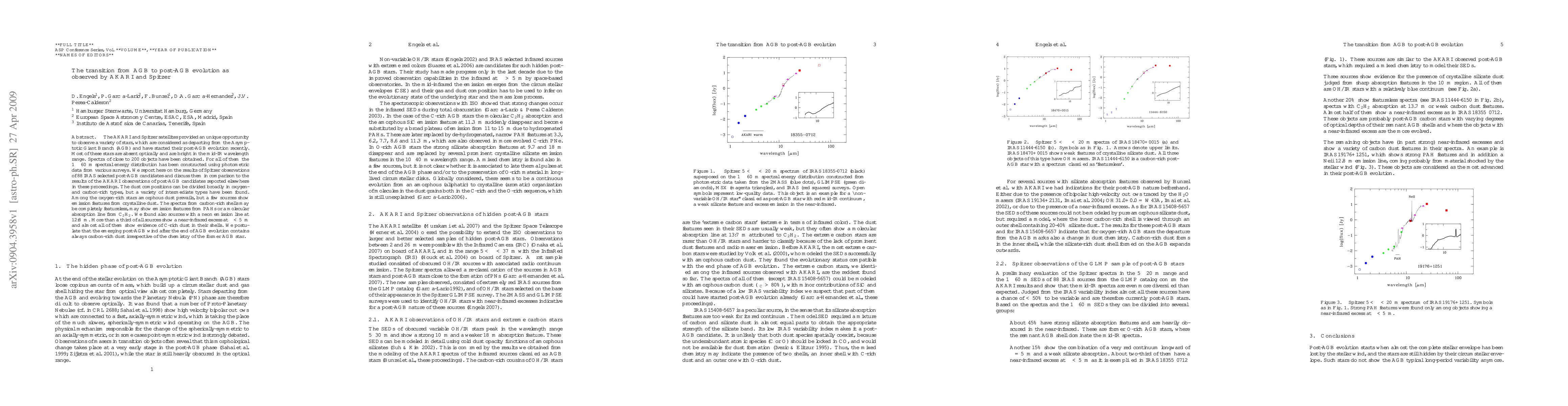 This paper uses AKARI and Spitzer satellite data to study stars transitioning from the Asymptotic Giant Branch (AGB) to post-AGB phases, revealing diverse dust compositions and spectral features, including oxygen-rich amorphous dust and carbon-rich shells with PAHs and C2H2. It suggests that post-AGB winds consistently contain carbon-rich dust.