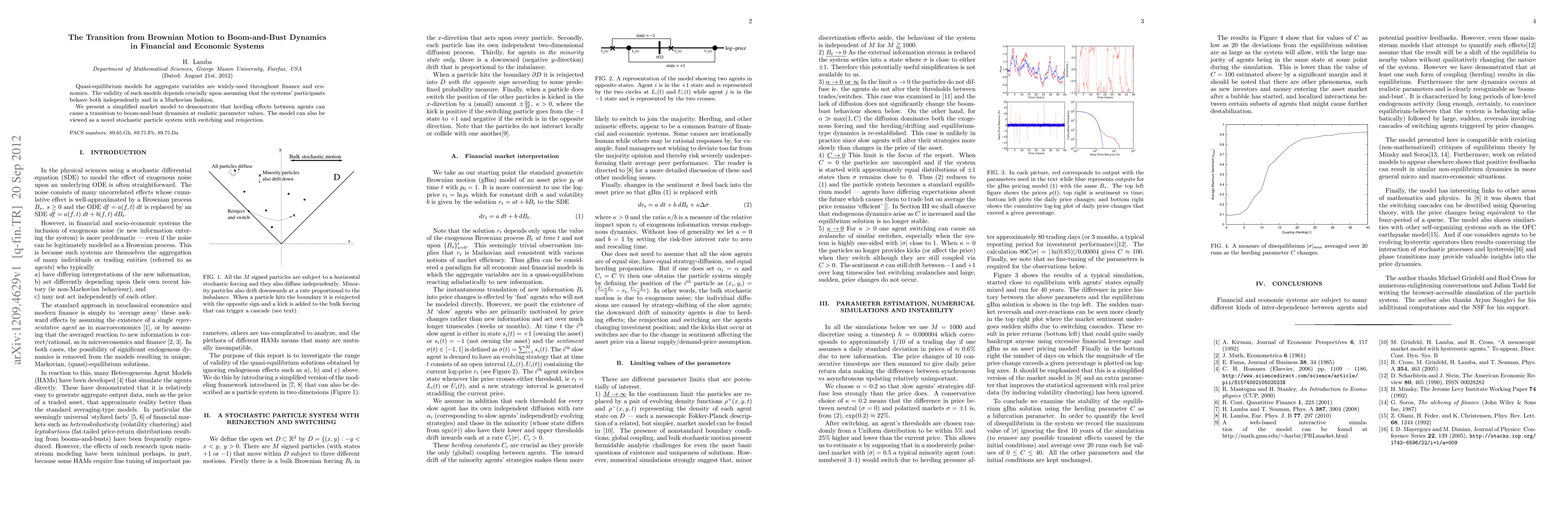 This paper introduces a simplified market model showing that herding behavior among agents can lead to boom-and-bust dynamics, challenging the validity of quasi-equilibrium models that assume independent and Markovian participant behavior. The model also represents a novel stochastic particle system with switching and reinjection.