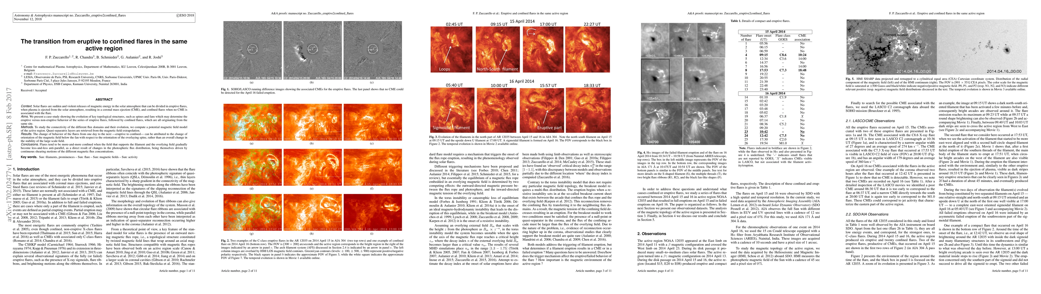 This paper investigates the transition from eruptive to confined solar flares in the same active region, attributing the change to shifts in magnetic field orientation rather than large-scale field stability. The study highlights the role of evolving topological structures and continuous shearing motions in the photospheric flux distribution.