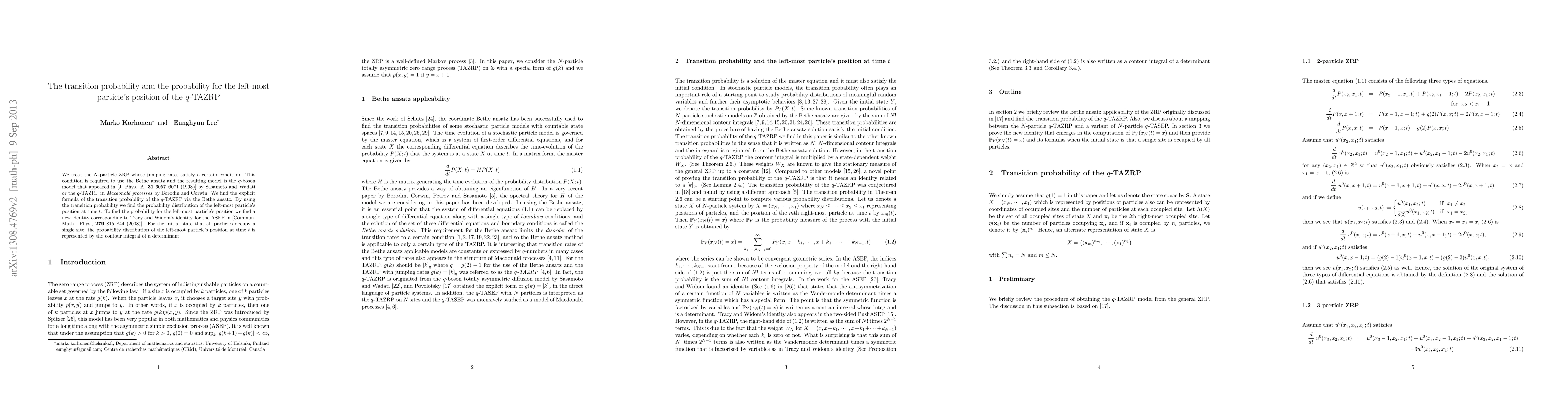 This paper derives the transition probability for the $q$-TAZRP using the Bethe ansatz and establishes a new identity analogous to Tracy and Widom's identity for the ASEP. It also determines the probability distribution for the left-most particle's position at time $t$, represented by a contour integral of a determinant for an initial state where all particles occupy a single site.