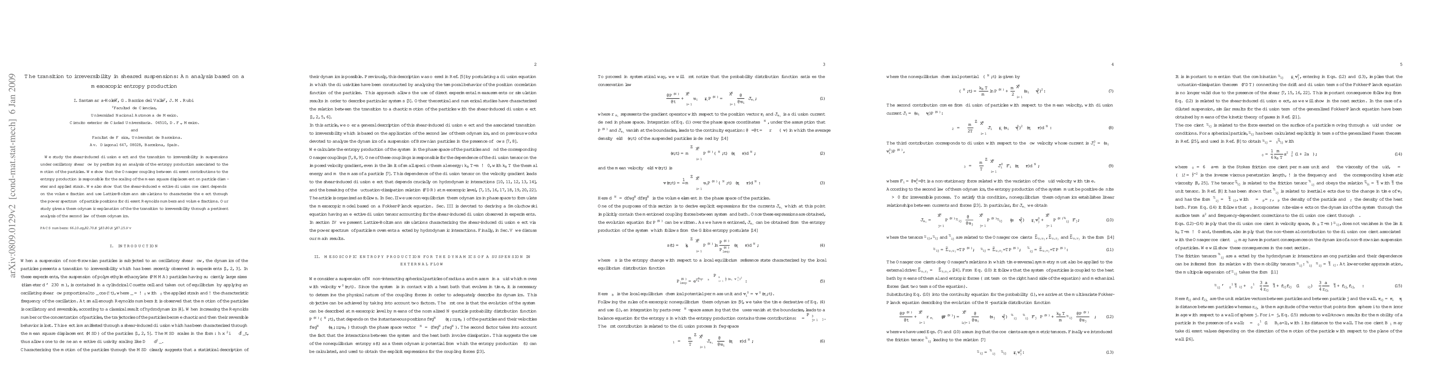 This paper investigates the transition to irreversibility in sheared suspensions by analyzing entropy production and its mesoscopic effects. It demonstrates that Onsager coupling influences the scaling of mean square displacement and reveals a dependency of shear-induced effective diffusion on volume fraction, validated through Lattice-Boltzmann simulations.