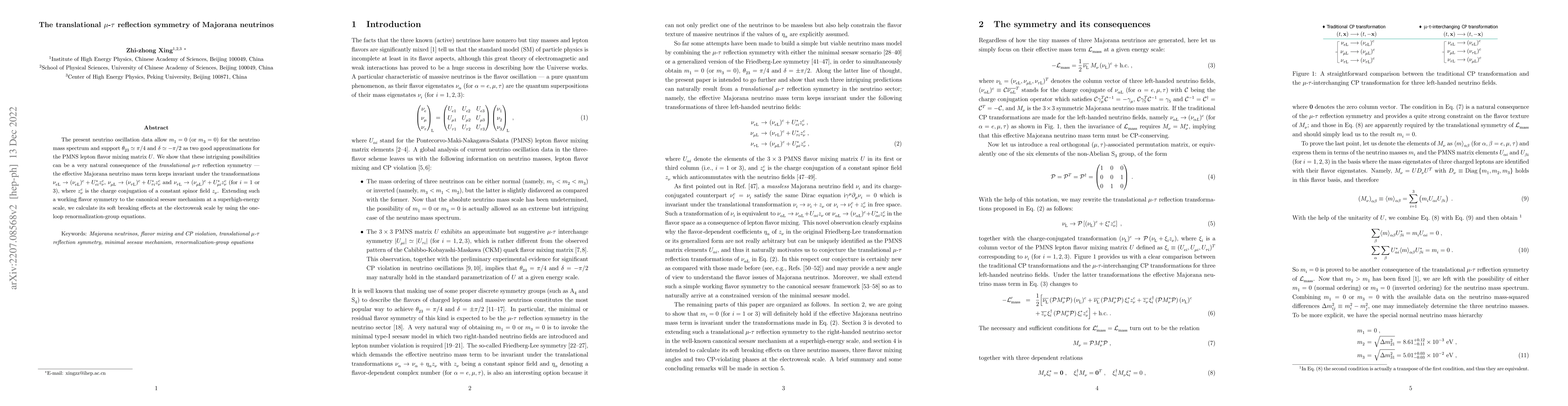 This paper explores the possibility that the observed neutrino oscillation data can be naturally explained by a translational $\mu$-$\tau$ reflection symmetry in Majorana neutrinos. The authors show that this symmetry can lead to specific predictions for the neutrino mass spectrum and mixing matrix parameters.