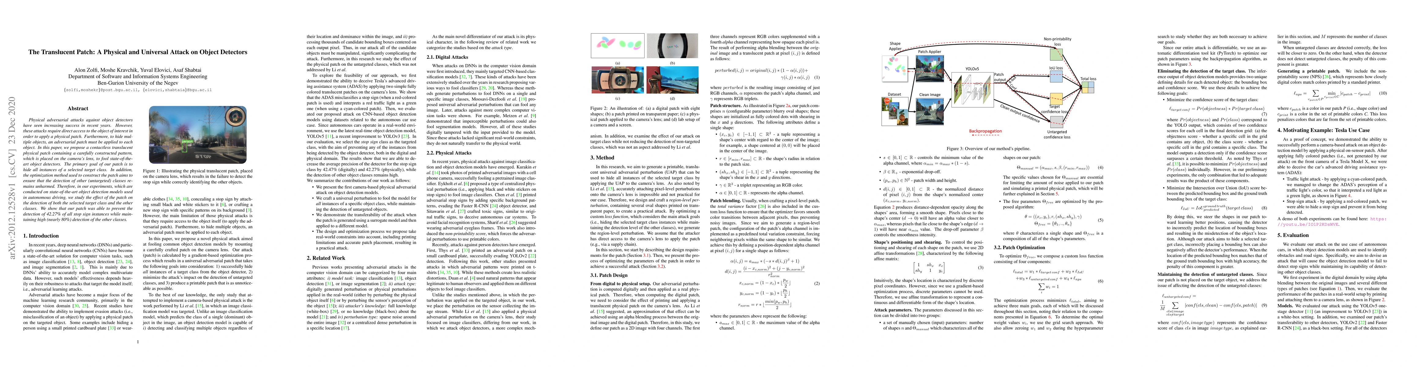This paper introduces a contactless translucent patch placed on a camera lens to deceive object detectors, aiming to hide instances of a selected target class without affecting other classes. Experiments on autonomous driving models show the patch successfully hides 42.27% of stop signs while maintaining nearly 80% detection accuracy for other classes.