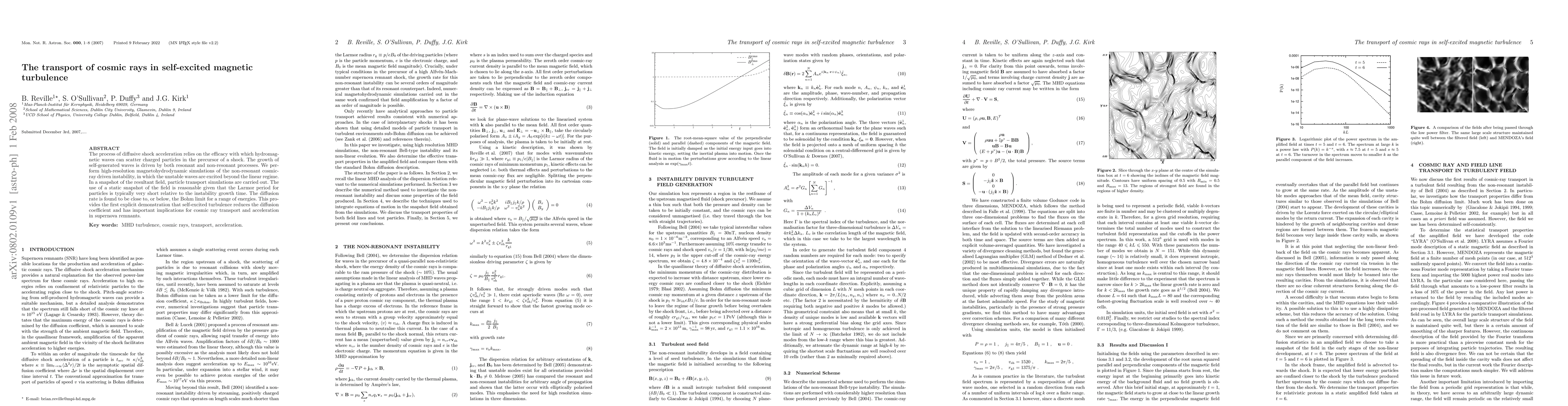 The process of diffusive shock acceleration relies on the efficacy with which hydromagnetic waves can scatter charged particles in the precursor of a shock. The growth of self-generated waves is driven by both resonant and non-resonant processes. We perform high-resolution magnetohydrodynamic simulations of the non-resonant cosmic-ray driven instability, in which the unstable waves are excited beyond the linear regime. In a snapshot of the resultant field, particle transport simulations are carried out. The use of a static snapshot of the field is reasonable given that the Larmor period for particles is typically very short relative to the instability growth time. The diffusion rate is found to be close to, or below, the Bohm limit for a range of energies. This provides the first explicit demonstration that self-excited turbulence reduces the diffusion coefficient and has important implications for cosmic ray transport and acceleration in supernova remnants.