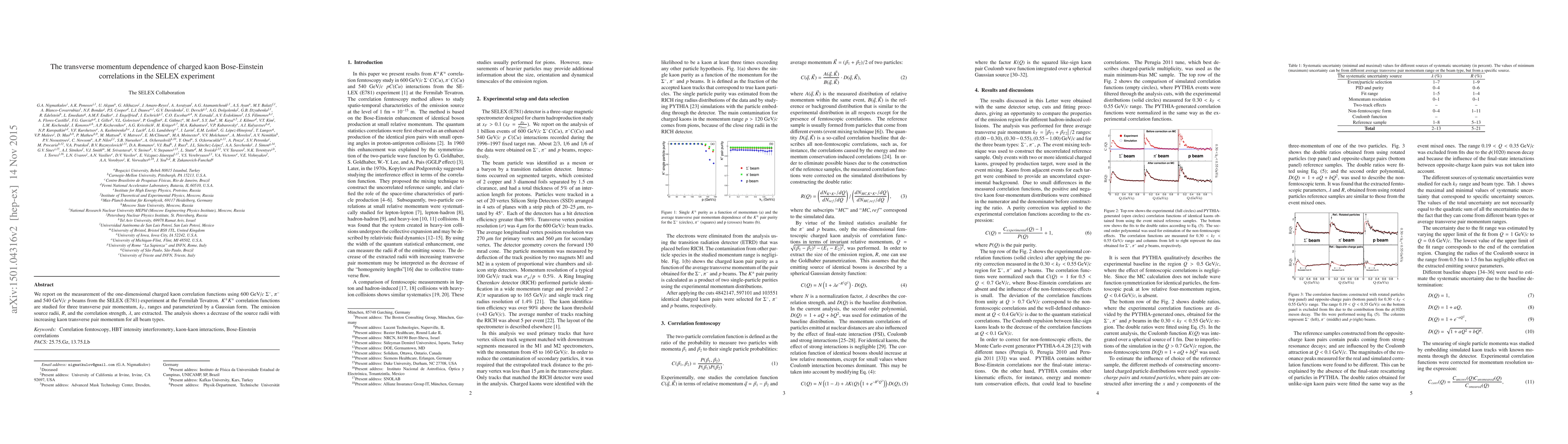 We report on the measurement of the one-dimensional charged kaon correlation functions using 600~GeV/{\it c} $\Sigma^-$, $\pi^-$ and 540~GeV/{\it c} $p$ beams from the SELEX~(E781) experiment at the Fermilab Tevatron. $K^{\pm}K^{\pm}$ correlation functions are studied for three transverse pair momentum, $k_T$, ranges and parameterized by a Gaussian form. The emission source radii, $R$, and the correlation strength, $\lambda$, are extracted. The analysis shows a decrease of the source radii with increasing kaon transverse pair momentum for all beam types.