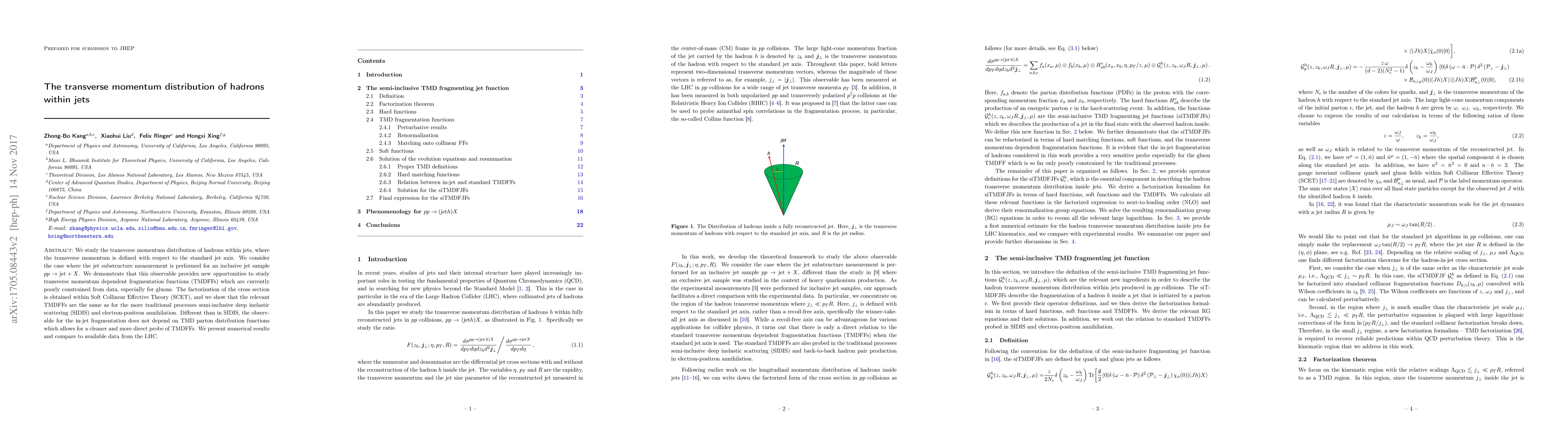 We study the transverse momentum distribution of hadrons within jets, where the transverse momentum is defined with respect to the standard jet axis. We consider the case where the jet substructure measurement is performed for an inclusive jet sample $pp\to\text{jet}+X$. We demonstrate that this observable provides new opportunities to study transverse momentum dependent fragmentation functions (TMDFFs) which are currently poorly constrained from data, especially for gluons. The factorization of the cross section is obtained within Soft Collinear Effective Theory (SCET), and we show that the relevant TMDFFs are the same as for the more traditional processes semi-inclusive deep inelastic scattering (SIDIS) and electron-positron annihilation. Different than in SIDIS, the observable for the in-jet fragmentation does not depend on TMD parton distribution functions which allows for a cleaner and more direct probe of TMDFFs. We present numerical results and compare to available data from the LHC.