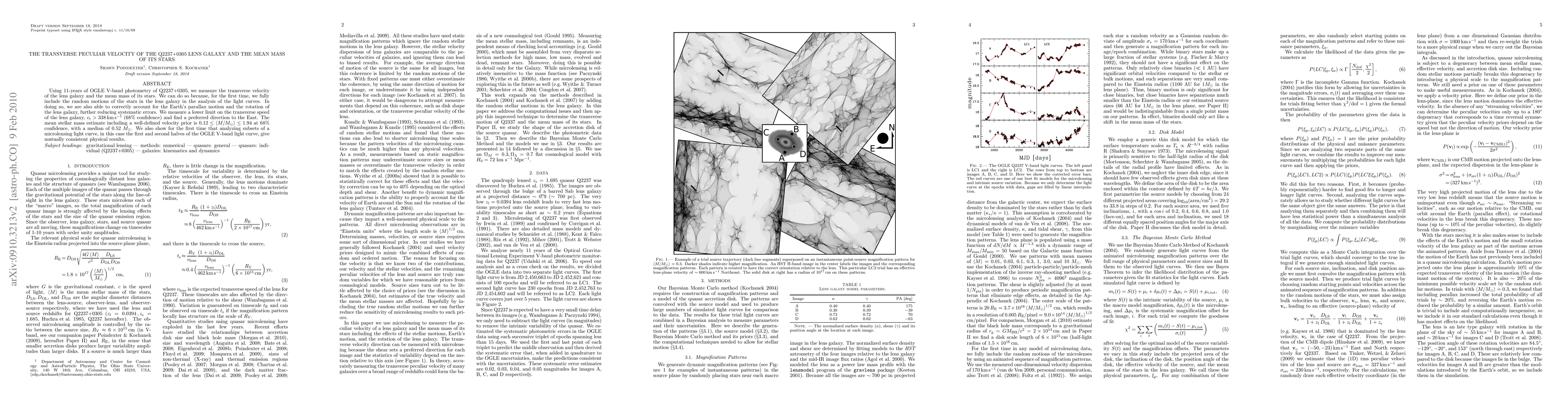 transverse velocity of the lens galaxy and the mean mass of its stars. We can