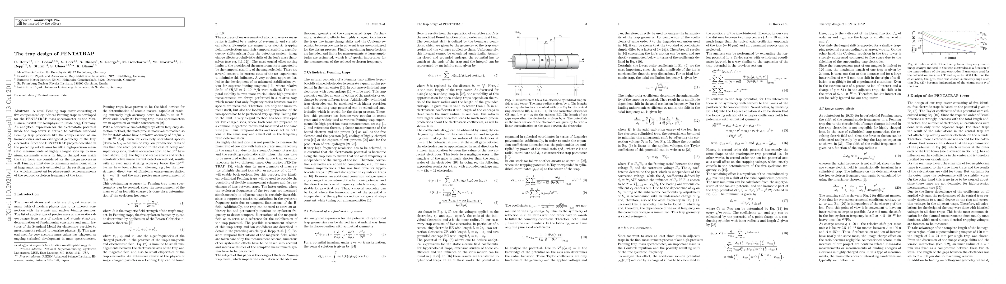 The paper presents a novel five-compensated cylindrical Penning trap tower design with an analytical expression for the electrostatic potential, ensuring compensation of anharmonicities and orthogonal trap electrode geometry.