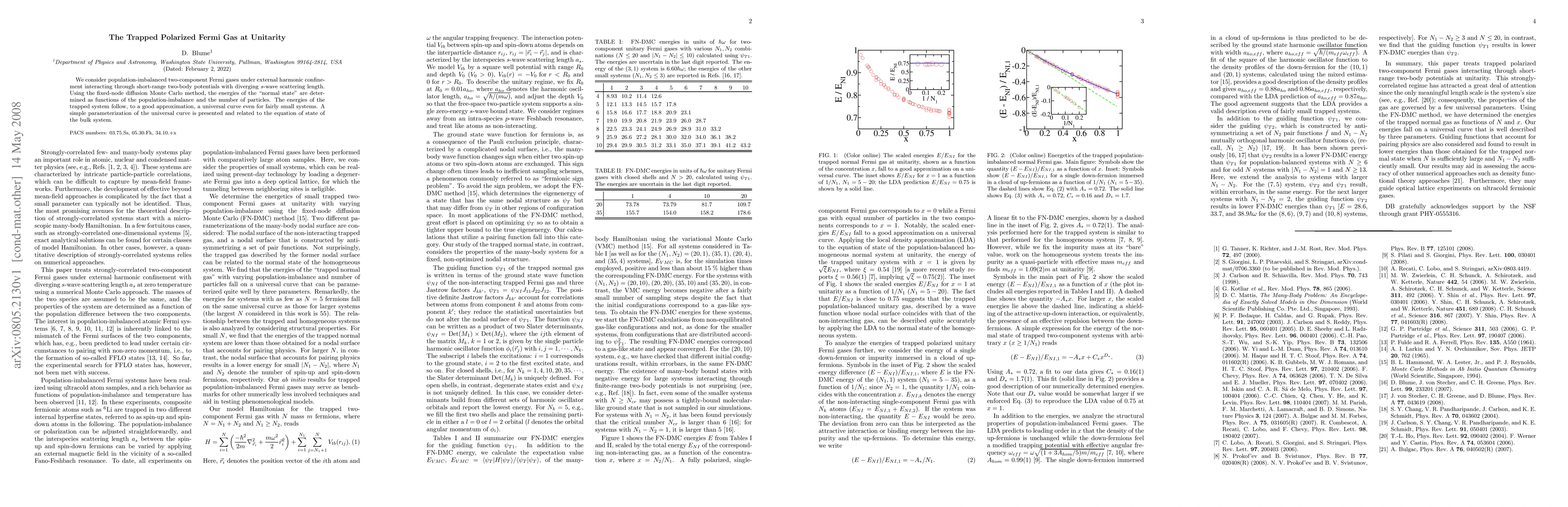 We consider population-imbalanced two-component Fermi gases under external harmonic confinement interacting through short-range two-body potentials with diverging s-wave scattering length. Using the fixed-node diffusion Monte Carlo method, the energies of the "normal state" are determined as functions of the population-imbalance and the number of particles. The energies of the trapped system follow, to a good approximation, a universal curve even for fairly small systems. A simple parameterization of the universal curve is presented and related to the equation of state of the bulk system.