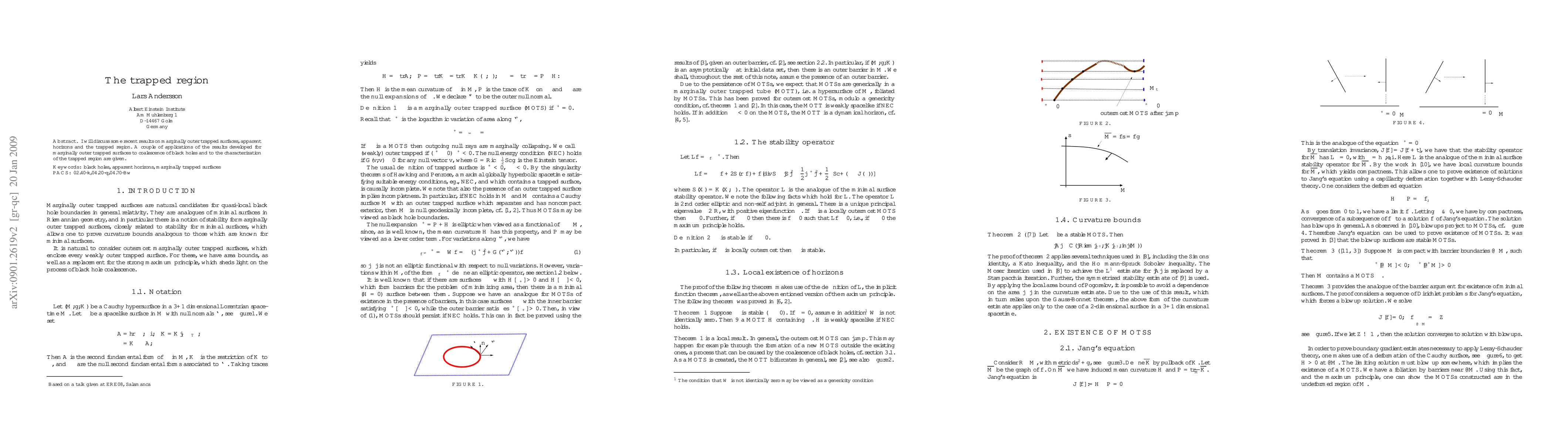 I will discuss some recent results on marginally outer trapped surfaces, apparent horizons, and the trapped region. A couple of applications of the results developed for marginally outer trapped surfaces to coalescence of black holes and to the characterization of the trapped region are given.