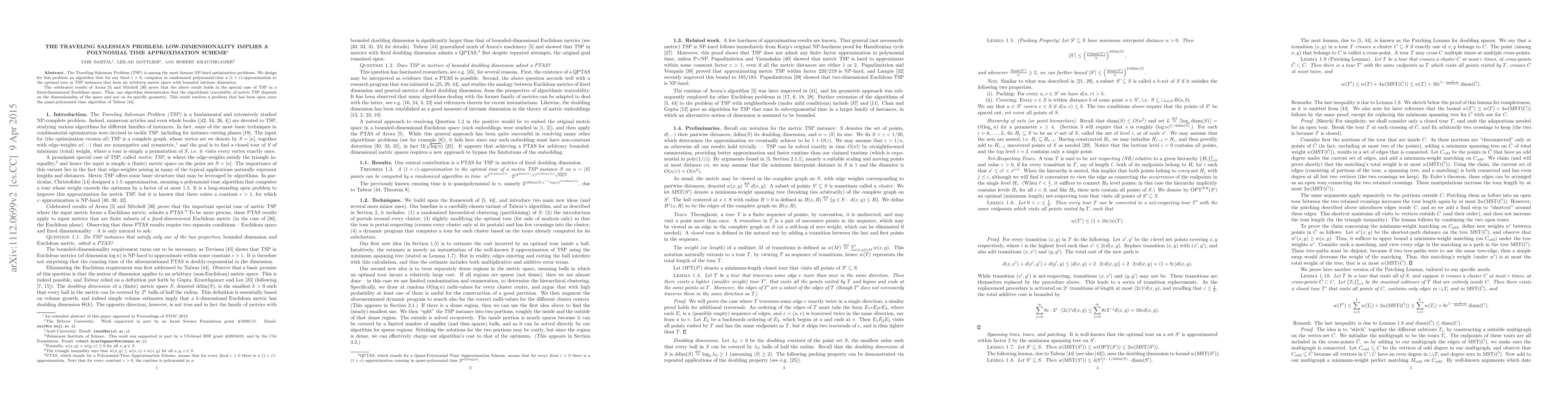 A randomized algorithm is developed to solve the Traveling Salesman Problem (TSP) in metric spaces with bounded intrinsic dimension, achieving polynomial time approximation schemes even in low-dimensional spaces.