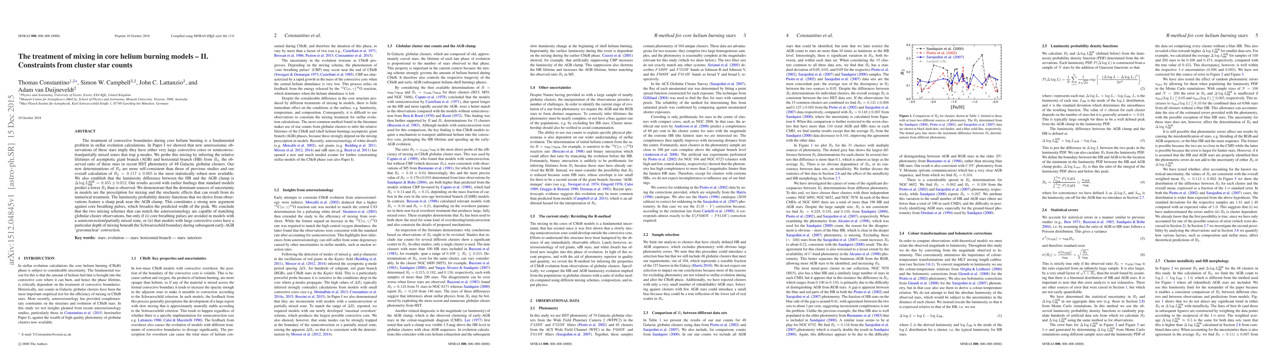 This paper investigates the treatment of convective boundaries during core helium burning in stellar evolution, finding that new observations suggest either large convective cores or semiconvection/partially mixed zones. It uses cluster star counts to infer relative lifetimes of asymptotic giant branch and horizontal branch stars, concluding that current models underestimate the observed ratio, and that mixing prescriptions significantly affect model uncertainties.