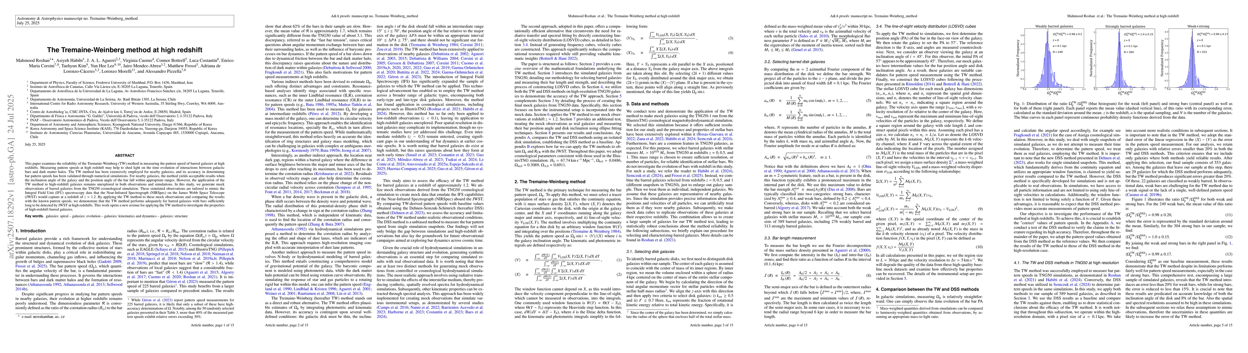 This paper examines the reliability of the Tremaine-Weinberg (TW) method in measuring the pattern speed of barred galaxies at high redshifts. Measuring pattern speeds at high redshift may help to shed light on the time evolution of interactions between galactic bars and dark matter halos. The TW method has been extensively employed for nearby galaxies, and its accuracy in determining bar pattern speeds has been validated through numerical simulations. For nearby galaxies, the method yields acceptable results when the inclination angle of the galaxy and the position angle of the bar fall within appropriate ranges. However, the application of the TW method to high-redshift galaxies remains unexplored in both observations and simulations. In this study, we generate mock observations of barred galaxies from the TNG50 cosmological simulation. These simulated observations are tailored to mimic the Integral Field Unit (IFU) spectroscopy data that the Near-Infrared Spectrograph (NIRSpec) on the James Webb Space Telescope (JWST) would capture at a redshift of $z\simeq 1.2$. By applying the TW method to these mock observations and comparing the results with the known pattern speeds, we demonstrate that the TW method performs adequately for barred galaxies with bars sufficiently long to be detected by JWST at high redshifts. This work opens a new avenue for applying the TW method to investigate the properties of high-redshift barred galaxies.