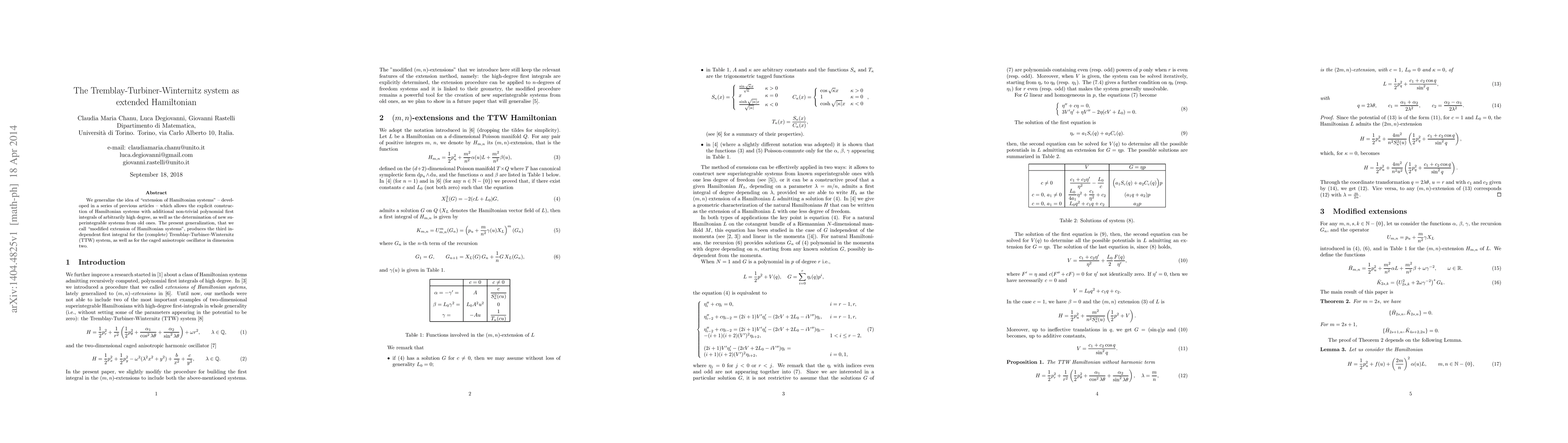 We generalize the idea of "extension of Hamiltonian systems" -- developed in a series of previous articles -- which allows the explicit construction of Hamiltonian systems with additional non-trivial polynomial first integrals of arbitrarily high degree, as well as the determination of new superintegrable systems from old ones. The present generalization, that we call "modified extension of Hamiltonian systems", produces the third independent first integral for the (complete) Tremblay-Turbiner-Winternitz (TTW) system, as well as for the caged anisotropic oscillator in dimension two.