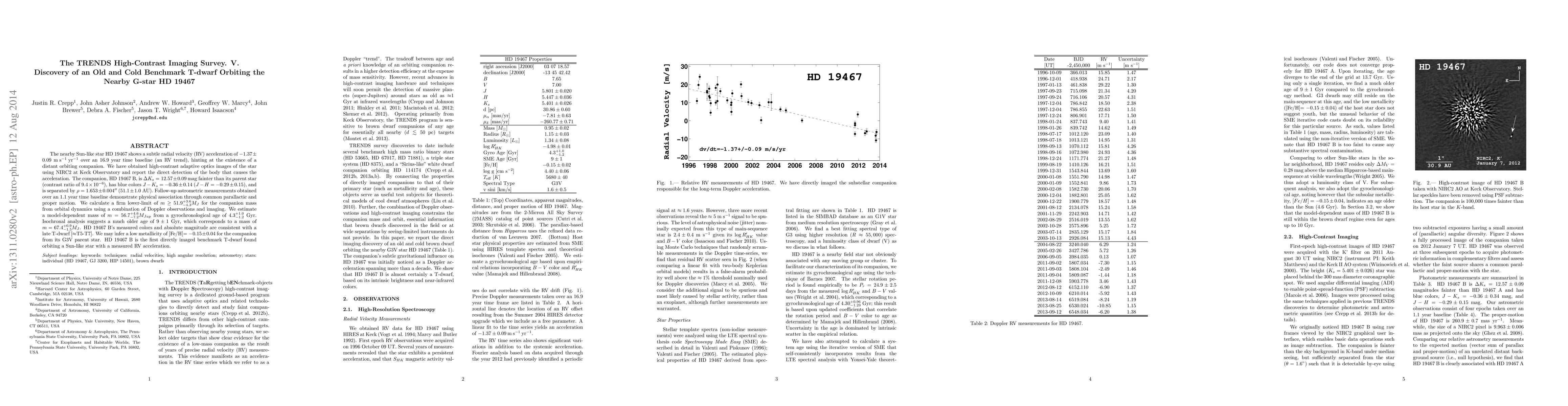 The paper reports the discovery of HD 19467 B, an old and cold late T-dwarf orbiting the nearby G-star HD 19467, detected through high-contrast imaging and confirmed via radial velocity trends. The T-dwarf is estimated to be at least 51.9 Mjup and likely much older than previously thought.